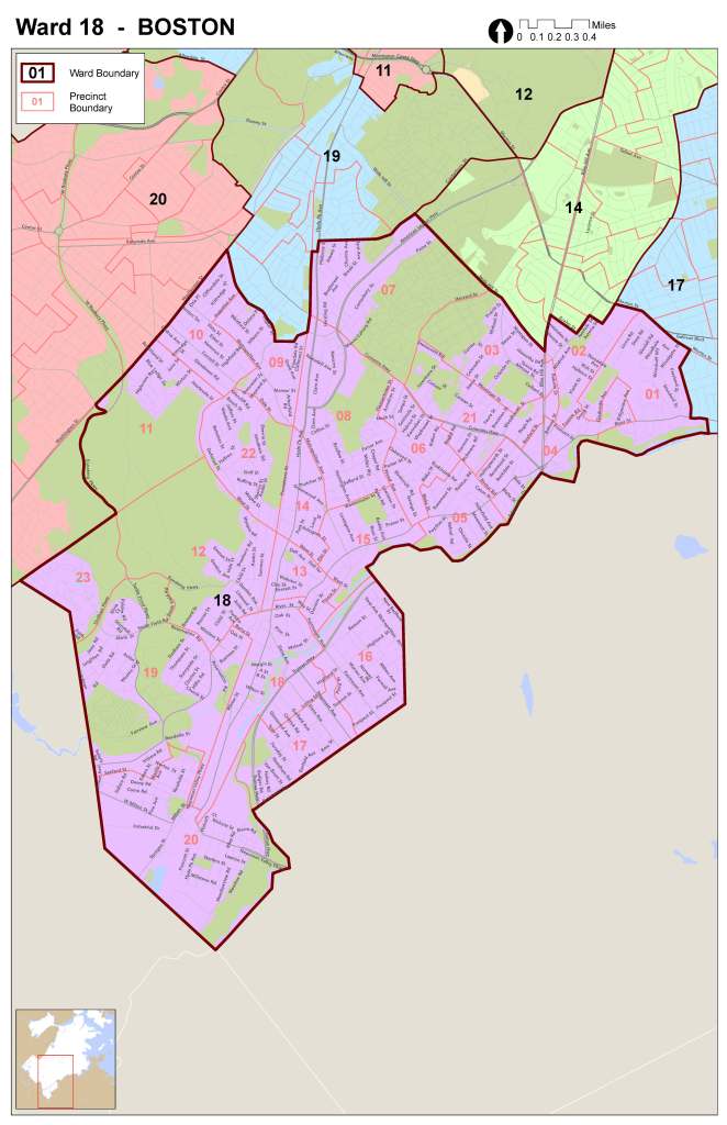 Ward 18 includes Hyde Park and parts of Mattapan and Roslindale. Here is a current map of the Ward: